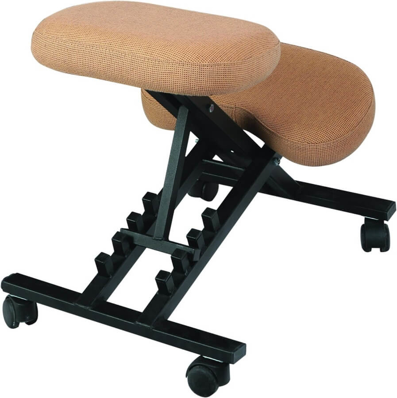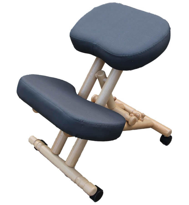 A térdeplőszék lényege, hogy a test súlypontját előrébb helyezi, így a gerinc természetes S-görbéje jobban megmarad.